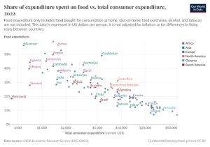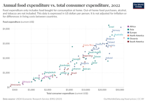 Ritchie, Hannah. “Engel’s Law: Richer People Spend More Money on Food, but It Makes Up a Smaller Share of Their Income.” OurWorldinData.org, 2023, https://ourworldindata.org/engels-law-food-spending.