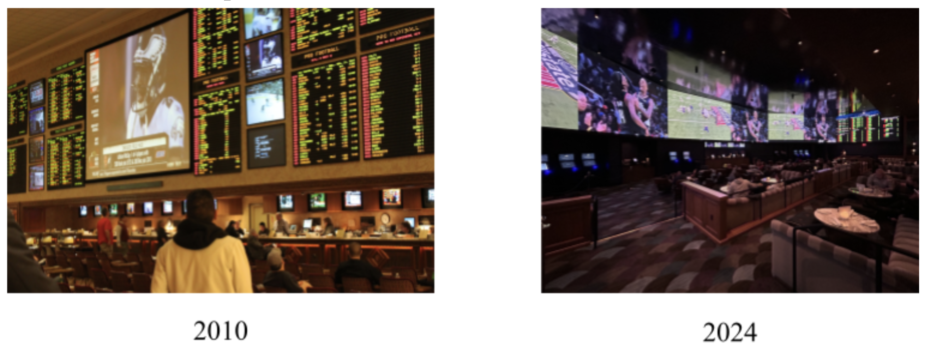 As sports betting has risen in popularity, casinos are implementing more physical infrastructure to sportsbooks. In the past sportsbooks were old, dingey, smoke filled rooms that rarely attracted a younger audience. Now, casinos are providing dozens of flat screen TVs, bar services, and improved dining options that are becoming more and more attractive for the masses. For instance, Circa Casino and Resort spent over 40 million dollars renovating their sports rooms to include floor to ceiling TVs and movie theatre speakers. This highlights how casinos see sports betting as a worthwhile investment and are betting that this type of long-term capital investment will turn profits for the future.